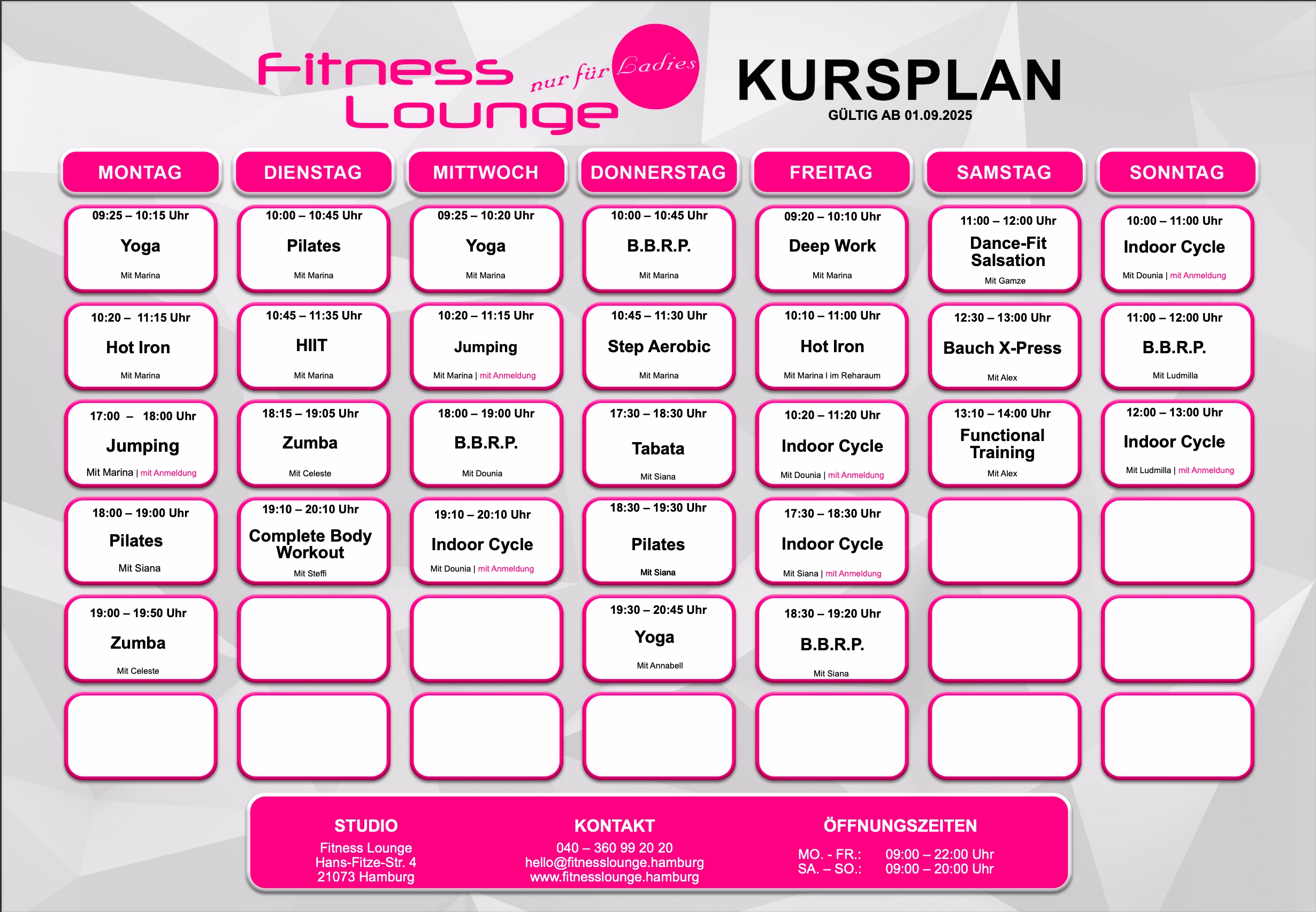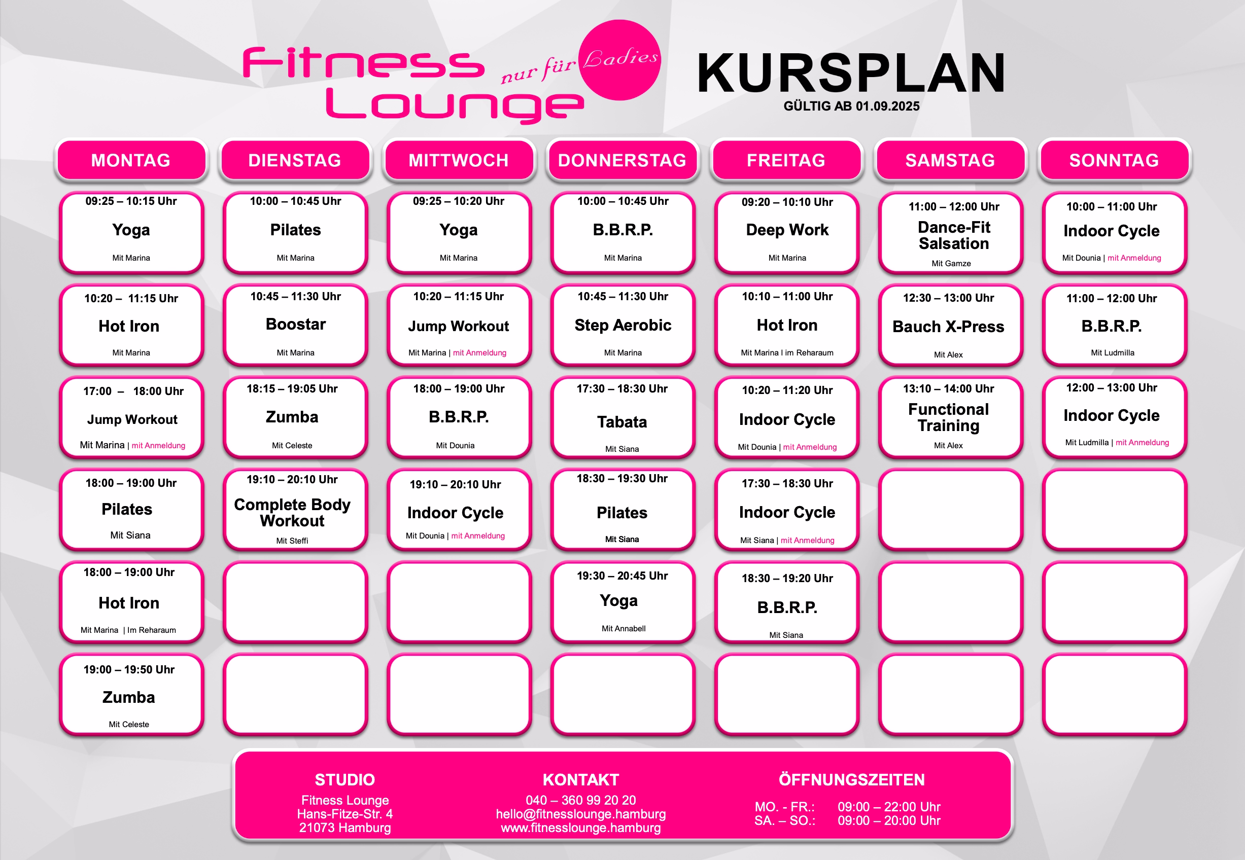 Der KURSPLAN der Fitness Lounge in Hamburg